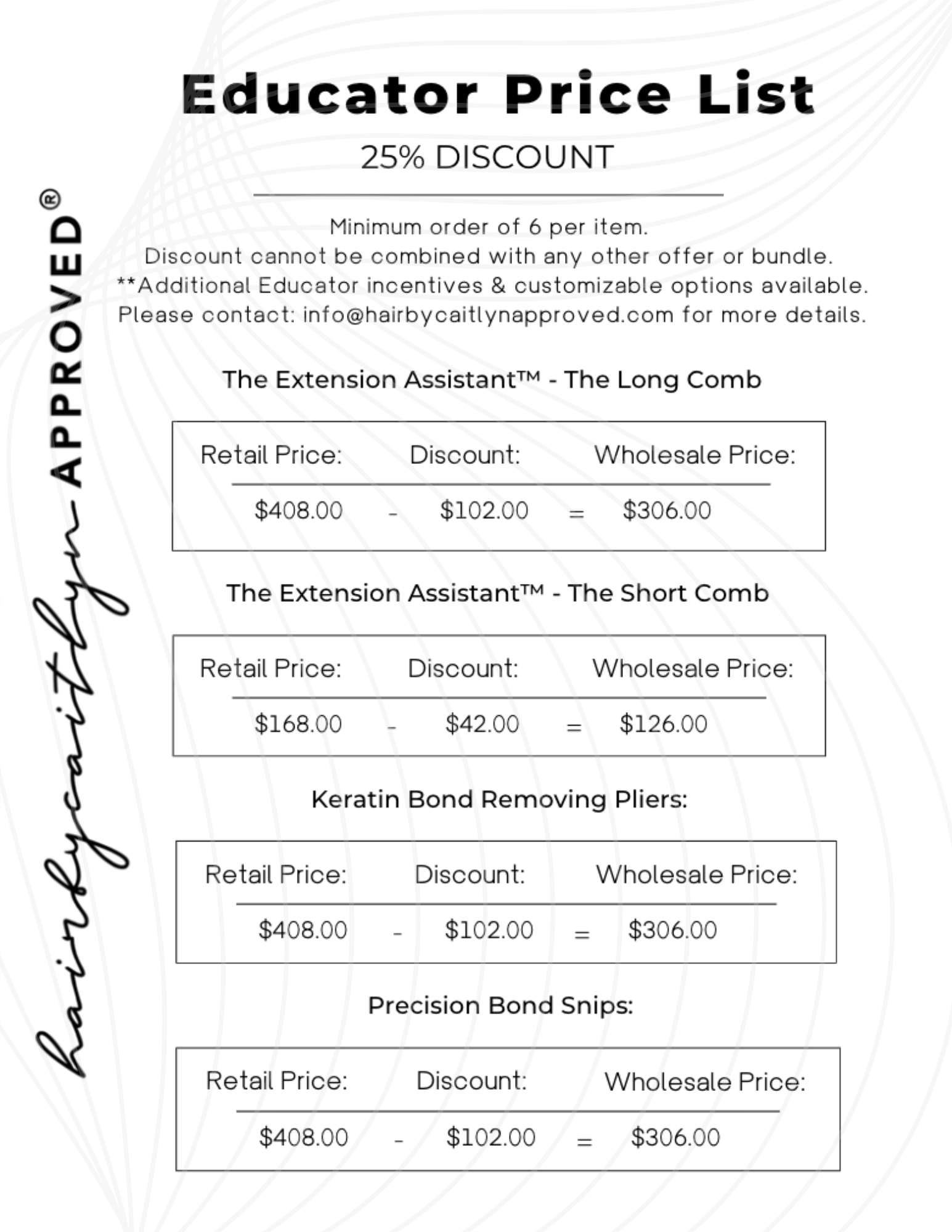 Did you know that hairbycaitlyn APPROVED® has Educator Pricing? We are happy to support fellow educators and offer a bulk discount on some of our essential products.