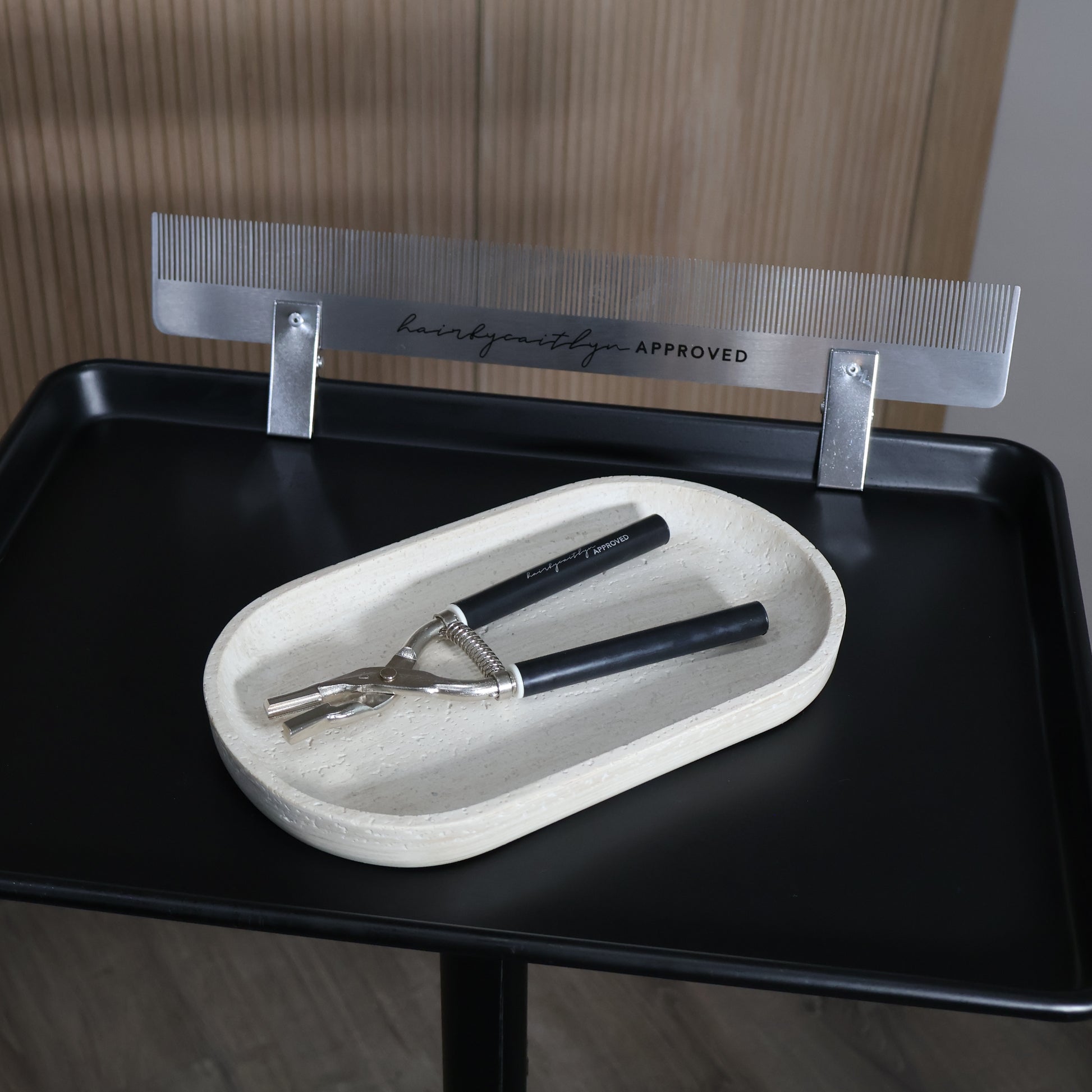 The Extension Assistant® - Long Comb in Silver + Keratin Bond Removing Pliers in Aesthetic Refined