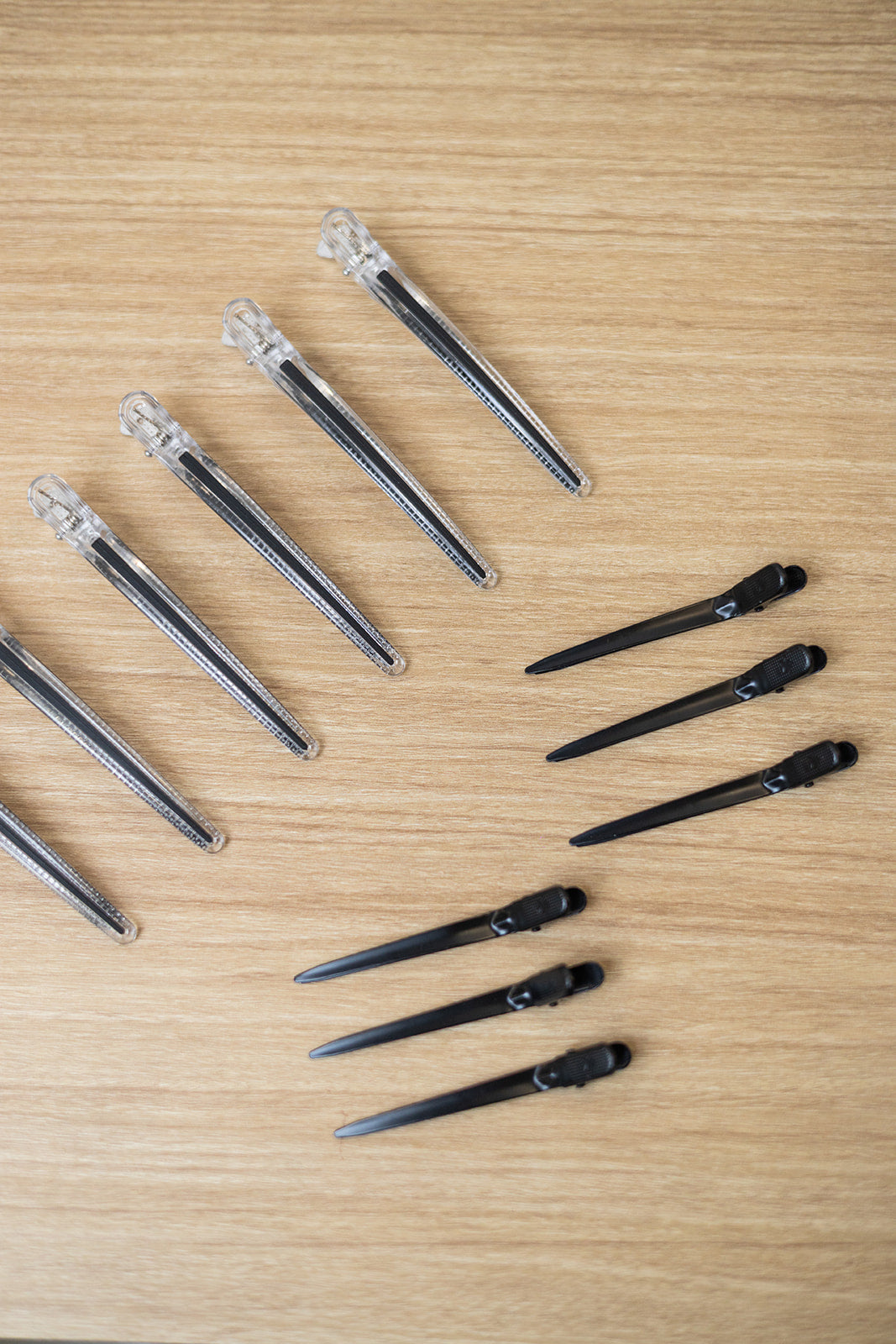 Second, the creaseless clips: save time by smoothing the hair completely and pre-sectioning with each extension application. I love these precision clips as they hold the hair tight and secure (even on the finest hair) without leaving a dreaded, crease line.
